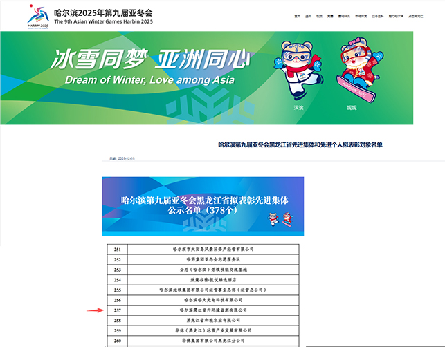 热烈祝贺霁虹公司入选哈尔滨第九届亚冬会黑龙江省拟表彰先进集体公示名单!