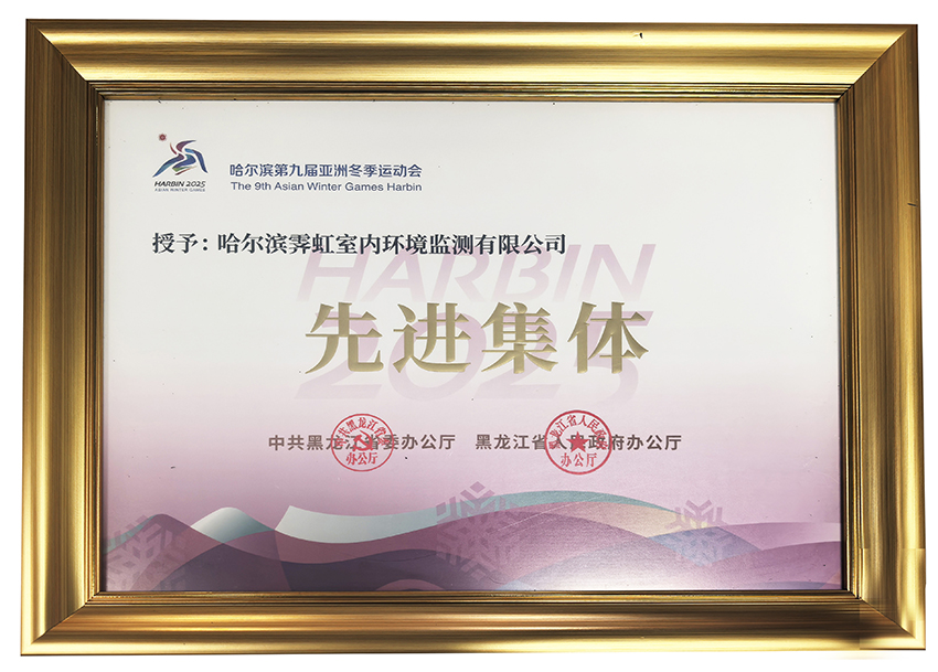 近日,一份沉甸甸的荣誉花落冰城。哈尔滨霁虹室内环境监测有限公司因在第九届哈尔滨亚冬会筹备期间,无偿为亚冬会场馆捐赠甲醛治理药剂、提供专业空气净化支持,我司被中共黑龙江省委办公厅、黑龙江省人民政府办公厅联合授予“先进集体”称号。